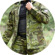 Production of all kinds of military pants, shirts, overcoats, hats, etc.